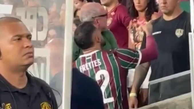 Freytes discutindo com torcedor do Fluminense na saída de campo