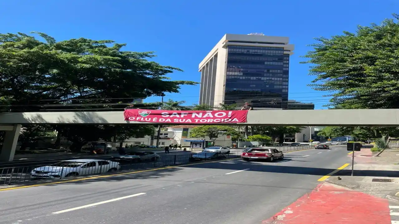 O sábado de Data FIFA, que deveria ser de calmaria no Fluminense, começou agitado e com tons de protesto na sede histórica das Laranjeiras. A esquina da Álvaro Chaves com a Pinheiro Machado amanheceu estampada com faixas e manifestações diretas contra o projeto de Sociedade Anônima do Futebol (SAF) capitaneado pela gestão do Mattheus Montenegro.