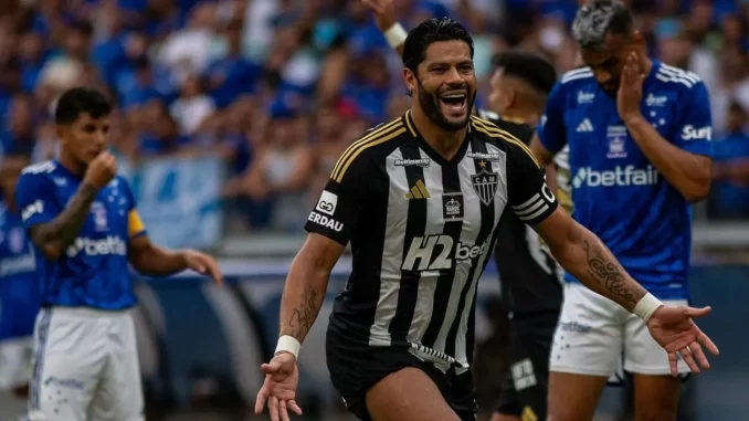 Hulk comemorando gol pelo Atlético-MG no Cruzeiro